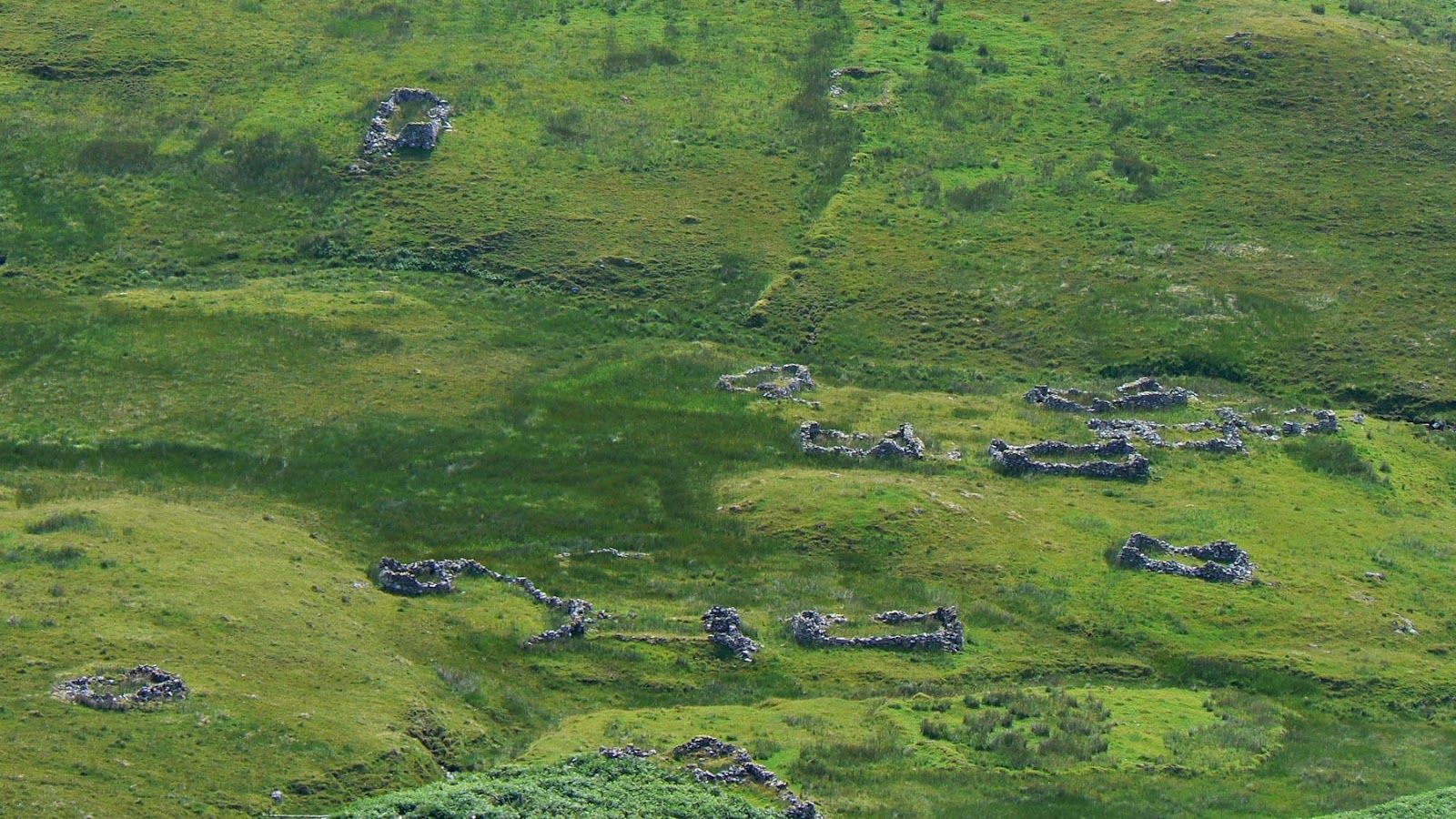 The evictions were carried out with considerable cruelty. There is a story that one crippled old woman who barricaded herself into her cottage had her front door walled up by a stonemason, imprisoning her until she agreed to leave. Looking at the buildings, few of their drystone walls stand above a metre high, suggesting that those who carried out the evictions went to some lengths to knock them down.