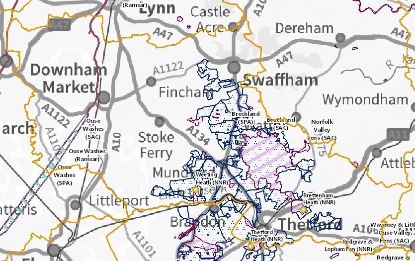 Liz Truss’ South West Norfolk constituency is covered in European nature sites (map from MAGIC)