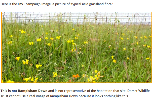 They have even claimed that the photo used by Dorset Wildlife Trust to illustrate Rampisham was not taken at Rampisham, because “it looks nothing like this”.