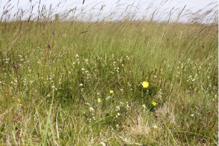 Photograph 11: Acid grassland to the west of the transmission station that conforms to U4c (Cooch & Biron 2013). Typically, bird’s-foot-trefoil, lady’s bedstraw, tormentil and dwarf thistle are more-or-less constants, along with glaucous sedge, spring-sedge, and quaking-grass, heath-grass and occasional downy oat-grass