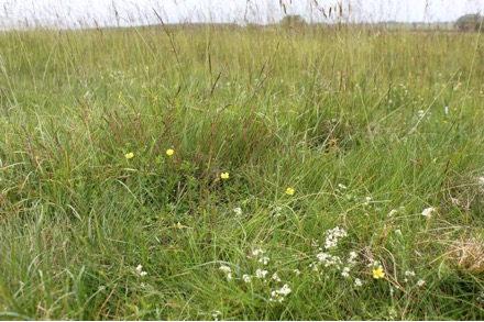 Photograph 4: Panoramic view of U4 acid grassland east of the transmission station. Typically this is growing very tall (late June 2013) since the cessation of grazing (none in 2013). Plants such as pignut and heath bedstraw are frequent, with mouse-ear hawkweed, yarrow, tormentil, spring-sedge and bird’s-foot-trefoil occasional throughout
