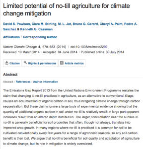 which suggests that there are good reasons for adopting no-till under some circumstances, but that claims for a role in climate mitigation (ie reducing greenhouse gas emissions) are “widely overstated.”