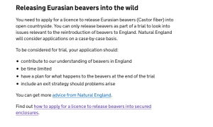 Well, Miles, it still says “Natural England will consider applications on a case-by-case basis” and so there is no change there. Despite Gove, NE is going to be conservative about any further licences until they get some reassurance that the free-living Devon beavers haven’t provoked a riot amongst land users.
