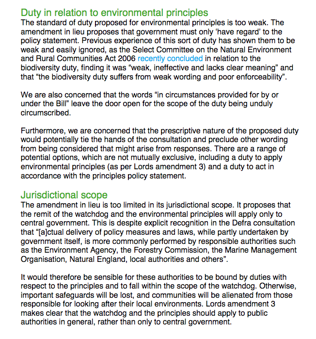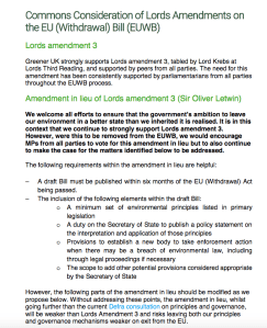 Since I wrote the earlier piece on moves to strengthen environmental protection via the EU withdrawal bill, Green Alliance has produced this very useful briefing note. MPs vote tomorrow, so I am posting this now so you can draw your MPs attention to it via twitter, facebook or any other route.