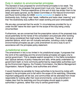 In summary the amendment which Sir Oliver Letwin has put forward is considerably weaker than Lord Krebs’ amendment which the Lords voted for. Here is brief, produced by the excellent Ruth Chambers.