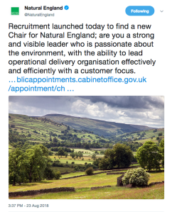 Natural England chairs come and go, and today’s publication of the advert inviting applicants to be the next chair, gives me an opportunity to look, once again, at the absolute state of Natural England.