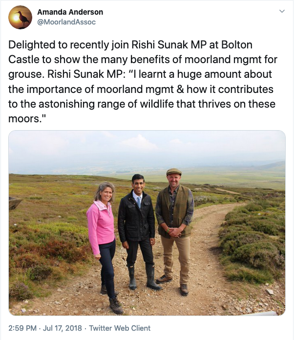 Chancellor of the Exchequer Rishi Sunak meets the grouse-shooting lobby.